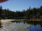 Planned on heading to lake alpine to float tube this past weekend for a few days but that lake is bigger then I remembered and the wind was howling, Had to change plans. Headed up hwy 4 a few more miles and stayed at a place called mosquito lakes, Its more like two large ponds, Its near ebbets pass at 8,000 foot elevation. Still was way to windy to even attempt the float tube or even to cast a flyrod. So I was forced to spend most of the time using spinners on an ultra light spinning rod, saturday had good action all day for a mix of wild, holdovers and planters, all rainbows, Landed 7, lost a few.Sunday same thing but worse, the wind was brutal, fished for several hours without a single hit. Finally early monday morning the wind quit, I only got in about 2 hours with a flyrod and my float tube, managed to land 2 wild fish and lost 2 others, on an olive wooly bugger, All the fish were about 12 inches with 2 that went close to 15 inches. Then once again the wind picked up so I headed home a day early, the wind was just to much. Its a bueatiful place defenitly worth a trip for the scenery alone. Heres a few pics of the lake.