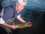 youll be takin it if i aint there. thats how you land a fish without a net, have brian with ya. eric does great without a net as well. man that was a great fish. and even better on a 4wt and 6x tippet. definitly cant beat that. its a good thing we was in the whole, cuz you know if we was in a rip or tailout that fish would have been gone.