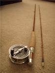 Well I got my first Bamboo rod today....a used South Bend 59-9 9" 5/6WT. I lawn casted it today and boy is it diffrent then my graphite rod....cant wait to take it out and fish it though... Its weird looking at it it is pritty old and well fished, kind of cool to think about all the places and fish it has caught.