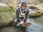 Today was a nice day at the creek. Me and a friend got to the creek at about 7:30 and fished till about noon. The action started right when we got there too, but picked up at about 10am. I lost 3 pigs probilly over 20 inches or so, and then I lost about 10 or so more that were smaller, I was just having one of those days where I just couldnt land anything. I had the right fly but lost every fish. Then I ended up landing a nice 18" bow. Which was nice concidering I couldnt seem to land anything till that fish. My friend ended up with a 17 " and a 15 ". So we both had a good day out on the creek. Lots of BWO's and PMD's hatching through out the day too. Anyways here is the pic of the 18" bow that I landed..