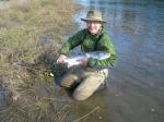 Some times good things happen. My goal for the past two years was to catch a steelhead out of the Russian River. In five trips I've not even been close to a wiff of a take. In Novemeber I tied over a hundred flies in preparation for this season. In December I drove up twice and got a lot of exercise and a little sun. On January 2, I drove up again with my son and two friends, and got my first steelhead. It ignored a large Jumbo John and took one of my glow bugs (an egg pattern). I guess I should set a new goal. How about being able to fish the Russian again this year, assuming it will come back into shape!?