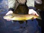 Thats a river i've been really wanting to try, I drive by it several times a year on my way to the mountains. Is the area around knights ferry a good place to start ? Thats a bueatiful brown trout Chris.