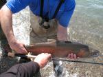 Packrat, I like that picture of the 27 inch fish, I like all these fish pics and I don't really care how big they really are. But speaking of big, I went fishing with Bono as a guide about the third time I ever went to Putah. At the end of a long day, with many nice fish, I landed a 27 inch fish (I think it says 28 in Bono's pictures on the website) and it looked exactly like yours. I mean the size, the color and that ferocious jaw were very, very similar. It was quite a fish. As one well trained in the art of exageration, but also interested in the actual facts, I have to enjoy it when someone says they caught a 27" fish. One part of me believes it, the other part thinks it is a great story whether it was 23 or 27. But I know those really big fish are there. Maybe not 34, although I think Bono caught a brown at Putah that was close to that size.