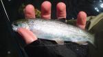 Fished the lower stan yesterday and had a blast. I caught a bunch of fish the biggest up to 14". These fish are well fed and have spunk! What was most astonishing is the diversity of the rainbow population. Some were chrome with very little spots, others were dark and had zillions of spots. I even caught two that appeared to be a mix between a brook and a bow: very little spots, dark with the marking along the back, a broad red stripe down the body and black fins with stark white leading edges underneath the body. It was a trip. A guy I ran into thought there might be some brook trout in Lake Tulloch that may have washed over.