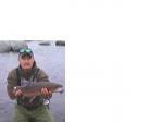 I got off work and headed out to the river at about 4PM with my wife. Thank to daylight savings, i had plenty of time to fish. No one was on the river so I had the river to myself. I started nymphing first and did it for 20 min and only had a fingerling bow on. Then i decided to stwitch to one of my favorite patter. Black Leech.... I move about ten feet down the river. First cast......and a few strip. I felt a hard hit, but luckly i was using a 8lb leader which it didn't brake. I have experience few times where these big trout would hit a streamers and brake smaller leaders. After a nice long fight i landed it. I was about 8 to 9 lbs and 26inchs.