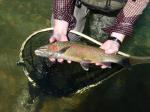 The monster that Chuck mentioned was ridiculous. He jumped about three feet out of the water twice and ran all the way across the river three times (one of those times he was on the surface the whole time). As Chuck said, on one of the jumps, the hook came loose and got him in the tail. When I saw he was hooked in the tail, I pointed my rod straight at him, held the line against the rod grip, and started to pull. The fish was in a back eddie and came right in. When the fish got a look at Chuck, he bolted, breaking the line.