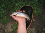 Swinger, White Bear Lake is near where I live, so it's not exactly close, but not exactly far away. About a two hour drive down to where I fish in the south east. There is decent stream fishing closer, but it's more crowded, and the fish are mostly stocked. I travel just far enough away from the Twin Cities to deter most fly fishermen (and almost all spin casters). There are enough decent trout waters in between me and them, but it's worth traveling for the crystal clear spring fed waters, the wild fish, and the solitude. If you travel this way, let me know. I can point you in the direction of some productive and beautiful waters, and you can decide how far you want to travel. A half hour away is the Kinnickinnick river which has 8,000-10,000 wild trout per mile (but on average smaller). An hour gets you to Hay creek in Minnesota bluff country. Hour and a half to the Whitewater, and one of our most popular fishing destinations. Two hours land you in Lanesboro where you can get a gourmet meal, watch the European tourists taking a day trip away from the Mall of America, and fish for 18 inch browns all in the same place. That gets you into the Root River Valley, which contains all my favorite creeks including the one pictured. I don't have a picture of my first trout on the fly, but I still have the fly I caught him on (I tied it myself). And I have a picture of the first fish I caught on a dry fly. (He's a whoppen 6 inch brown) My second 'puter needs an overhaul, but once I get it running again I'll post pictures of that, plus my home waters in the summer.