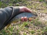 Made it out one more time. Trees are just starting to Bud, and will have leaves soon. Total of nine fish to hand, but not a one over 10 inches, all off dry flies. They were rising pretty indescriminately. I hooked up most of the fish I saw. One thick 10 inch trout felt bigger, taken out of a trio. He was the smallest, but the two larger ones took off when he started jumping.