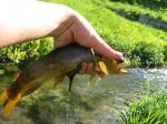 Hey everyone, just thought I'd check in here and man does it sound like some tough fishing out your way.  Lots of skunks, lots of flow problems with your tailwaters.  Is spring/summer a tough time to fish for trout in California?  Here in Minnesota things are finally starting to pick up.  Did a fishing/canoeing weekend in the Root River Valley, and while it wasn't exactly spectacular fishing down here I did get 13 fish to hand in limited outings over three days.  Biggest was 15 inches, but for clear spring creeks thats a decent sized brown trout.  A few brookies thrown in to the mix.  Here are some pictures, though my wife brought down the camera a couple hours after I released the 15 incher.  My total would have been better but an obnoxious group of people with 5 dogs set up camp on my favorite little creek and had the fish put down all weekend.  Finally coaxed one out of my favorite pool when all five dogs showed up and started swimming then came over and got tangled in my fishing line.  Learned my leason though, and next year I'm going to get that campsite so no one else can take it.