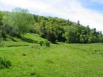 I caught a 10 inch brookie out of the same spot that produced the one in the picture but he flopped out of the net while I was measuring him. They both came out of a darker larger creek called Wisel, part of a six fish session casting to rising trout with a #12 Adams Irresistable. That session was the only one all weekend that produced with dry flies, and I saw risers all up and down the bank. The rest of the action was off of a two fly nymph with midge dropper setup similar to what most of you guys use on Putah. In fact I caught the 15 inch brown on a Zebra Midge that I tied to fish Putah this winter. The view of the meadow is the spring creek I caught the bigger fish out of. Met a fisherman comming out as I was going in who claimed to have been charged by a Black Angus Heffer with her calf. What an inglorious way that would be to go. He said "I wasn't sure what she was going to do if she got to me, but I found the whole thing disconcerting."