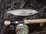 I fished the upper McCloud above Fowlers on saturday. It was overcast and showers till about 4 in the afternoon. Fish were rising all day. Most were 8 to 10 inches except for this little guy.