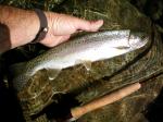 Second day, did something I hadn't done in a while. Fished between Fiddle Creek and Indian Campground. I usually stay away from that beat. It was on fire! Caught beautiful wild 'bows all day just like the silvery guy in the picture. Same rig. Same technique. Drift the Stim, then swing the Prince. They even hit the Stim on the swing. Go figure.