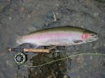 I fished the Trinity yesterday with Ron Keller of Kellers Guide Service. Contrary to most of the reports out there, there are some steelies in the Trinity. I fished the section of the river up near Lewiston. I hooked 4 and landed 2 very nice steelhead, one 25" hen and a 23" buck.  Spoke to about 9 other boats and they were all averaging 2 to 4 fish per boat.  The hot flies were a black or brown stonefly with a red or blue copper john below.  All the fish I caught were in faster water.