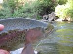 Saw some good water downstream and hit that area. First cast fish on. Every ten feet there are a few more fish. The fish are big and hungry. It takes a while to move ten feet, but it is worth it.