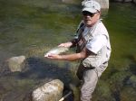 I wasn't able to make up to the Truckee due to my anniversary on friday. I was looking forward to fishing the LT because my last trip up there in Nov with Brian an Eric I got skunked while they both hammered the fish. So for Fathers day, I honor my dad by going fishing. I started out on some go to places that always produce, I saw fish got some looks , but no takers. I tried three different creeks and not one take. Finally I decided to try a creek I had never fished before, I had looked at it several times but it was so small I always past it up. This was quite a Fathers day surprise . The fish were spooky but if you could get adrift without them seeing you, you would get a look or a take and you only got one drift and then they were gone. Most of the fish were small but there were a few that made the day worthwhile.