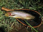 I was vacationing in Tahoe last week and got out twice to fish the LT. On Tuesday I went out for an afternoon session and got on the water about 3:00. Started at the upper section and got into a fish right away, maybe 3 casts into it. Nice 22 inch rainbow. A couple of casts later in the same run and I get an 18 inch rainbow. I was able to fish for a half hour before the thunder storm hit complete with lightning and hail. I made a run back to the truck for cover and waited it out for a half hour or so. Cleared up and the sun came back out. Fishing definitely slowed after the rain but I was able to pick up 2 more fish lower down stream, another 18 inch bow and a 12 inch brown. All fish caught on Tuesday were taken on a dry fly even though there were no fish showing on the surface. My wife had the camera so no photos from Tuesday. Finished the day with 4 fish.