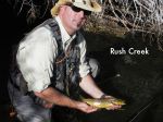 On Saturday we wanted to try something different so we headed down 395 to Rush Creek. If you have never fished it, it's very small, very technical water with a healthy population of browns and rainbows. Again we were both into double digits with fish going to 12 inches but most were in the 8 to 10 inch range. Since this is such small water a 12 incher is a really nice fish. Brush lines both banks so you are in the water the whole time walking upstream. Dries worked really well, sometimes with a dropper picking up fish below.