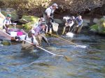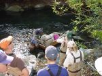 PCT took part in a electrofishing survey this week led by the DFG's Heritage and WIld Trout team. Several PCT members served as volunteers each day netting fish and collecting and recording data. A good time was had by all in spite of the hard work. Lower, Middle and Upper sections were surveyed with increasing numbers of fish captured as we went up. Most of the fish were small, but there was a fair number of fish in the teens and a few over 20", just as one would expect from recent posts on the forum. H&WT was pleased with the result which was designed to produce a baseline measure of the age and size distribution: appears we have a sustainable WT fishery if we treat it right. Attached are a couple of action shots at a couple of sites-feel free to guess where we were and name anyone that looks familiar to you. I encourage the volunteers to share their experiences as long as tthey don't give away the new "sweet" spots.