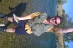 The pic below is of the two fish I caught on the same cast, the little bow on top, and the little pike minnow on the bottom---kind of hanging there between my legs, hard to make out from the pic.