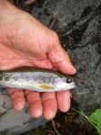 I had been waiting for the flows on the Middle Fork to go down so I decided to head up there this weekend. On the way ,crossed Lake Oreville, first time I've ever seen it full. About 20 miles up Hwy 162, I find the road is closed with no access to where we want to go. Time to pull out the DeLorme , there are a lot of blue lines in this watershed. Fished three different creeks with mostly small rainbows with one surprise. As a bonus , we did some crevicing, this high water year has also been good for gold .