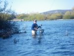 There are still a few salmon hanging about, even some late spawners. The egg bite is in no way over, but far from it's peak. The day was beautiful. As I'm working a run, someone yells out to me from behind. I turn around and recognize the face, but can't believe it was possibly him . . . Jerry Lewis, former fellow PCT board member!!!  Geeze, what the heck is he doing out here from New York??? Well, Jerry is in Houston, about 6 months now. Goodbye New York. He had a business meeting in SF on Monday and came out a day early with his gear to hit the end of the egg bite. We went ahead and fished the rest of he day together.Â