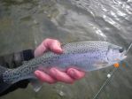 The fishing started rockin' and rollin' right away in the morning, and was good all through the day. Bright colors worked pretty well and a couple of new flies I had just bought worked well also. I was able to nail a nice Yuba fatty at the end of the day in some ankle deep water where I never thought it would be holding. All the fish were very healthy and had their usual Yuba combat game on. I threw in a couple pictures of some of those healthy fish. The Yuba decided to be nice this day.