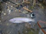 I worked the weekend and took advantage of the weather window with a day run up to the Yuba on Friday. Seeing that it was going to be 33 degrees in the morning, I got a little later start than usual. The river was in great shape, about 2-3 foot of visibility with that great green tinge to the water. There was enough color in the water to provide a bit of camouflage for the anglers. The high flows of a couple weeks ago have completely erased all of the salmon redds. I suspect that the eggs have been washed away from all mid to late season redds. I really like what has happened with the latest push of gravel on the river. Thw super high flows of 60k+ last year had really gouged out parts of the river. The latest high flow was enough to fill and flatten many areas out with smaller gravel. The habitat has really improved.