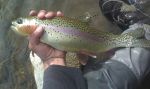 The fishing was wide-open upriver as the fish keyed into the small midges. I think the bite improved as the day warmed up. Ironically, the best setup seemed to be the same one I use at Putah Creek: the kinky fly and either a zebra midge or a cream midge as a dropper. The water was chilly and forgetting my polartek pants was a big mistake.