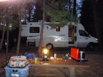 We met a couple camped next to us and the husband had fished for 5 days straight and landed one fish.  That was enough for us so we packed up and headed north, up past Almanor and over Lassen to Burney State Park.  We fished Burney Creek that evening and again were skunked to end a very frustrating day.  To cap it, the skies opened just as we got our fire going and forced us into the RV to drink our beer and eat our steaks.  The weather front moving in combined with the full moon was what we decided to blame the skunking on.  We were over half way through our 4 day trip and had precisely one fish each and caught those in the first hour!