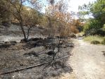 Hey everyone. I went to the creek and just as I suspected fairley heavy burn down to the waters edge in places but as you would suspect pretty spoty with some places burned to the dirt right next to places only slightly touched. I checked with state fire and was told the road was open but when I got to pleasure cove resort CHP had it closed again but get this I must have an angel on my shoulder the CHP sargeant offered me and Rusty yup Me and my dog Rusty a ride down to access 3 and back to assess the damage maybe its Rusty he is a real cutie and the sergeant was a pretty cute lady. You should have seen us Rusty and me riding shotgun in the CHP cruser. Anyway I need to get back up to the creek to check access 4 and 5 Ill bet its toast. I think im back on the creek soon. Its this winter im worried about , with this drought it burned pretty hot and much of the hills are bare soil and steep so when the rains comes soil erosion follows .