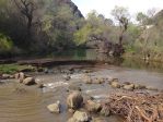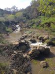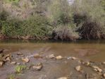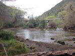Took advantage of what seemed to be good weather to stop by Putah Creek this morning. The creek today was pretty much "blown out". It was low, less than 100 cfs, mud brown and with visibility of 6-10" at best. I didn't bother to gear up and fish it but I did talk to two fly fishermen who had hit most of the spots between Parking Areas 5 to 3. They had no luck. I went up to the parking area across the bridge beyond the campground and took a look at Cold Canyon Creek (CCC). It was raging and pouring mud into Putah Creek. The water in Putah above the confluence of CCC was clear so if anyone plans on going out there you might want to try the far upper reaches. I'm attaching a few photos from this morning of CCC, the confluence, the merging waters and just how low the level was from below the bridge.