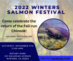 Winters is celebrating the return of the Chinook Salmon to the Creek this coming Saturday November 5, 2022. This is a fun event for the whole family with live music, local food trucks, a raffle, and a number of exhibitors including PCT, fly tying demos by Fly Fishers of Davis, fly casting game for kids (of all ages) and the infamous "mussel boat" encrusted with dead Zebra and Quagga mussels. Bring the family for an enjoyable day (sunny weather is in the forecast).